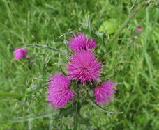 オキノアザミ 隠岐固有のアザミです。 トゲが多いのと、背が高く なるのが特徴です。 時期になると、島内どこでも 見ることが出来ます。 |